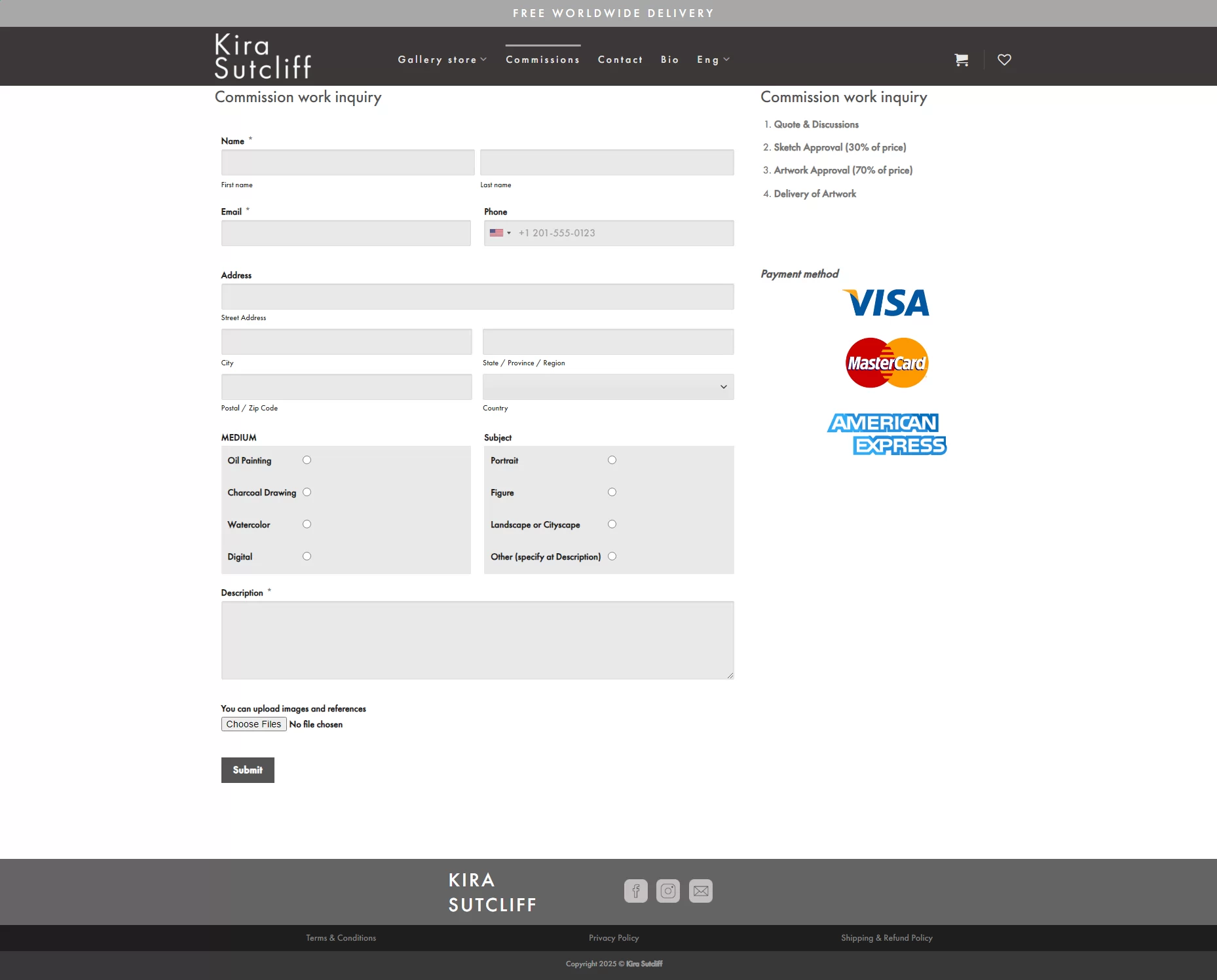 Կայքի պատվիրատուն գեղանկարչուհի է, նկարների բազմազան ոճերով։